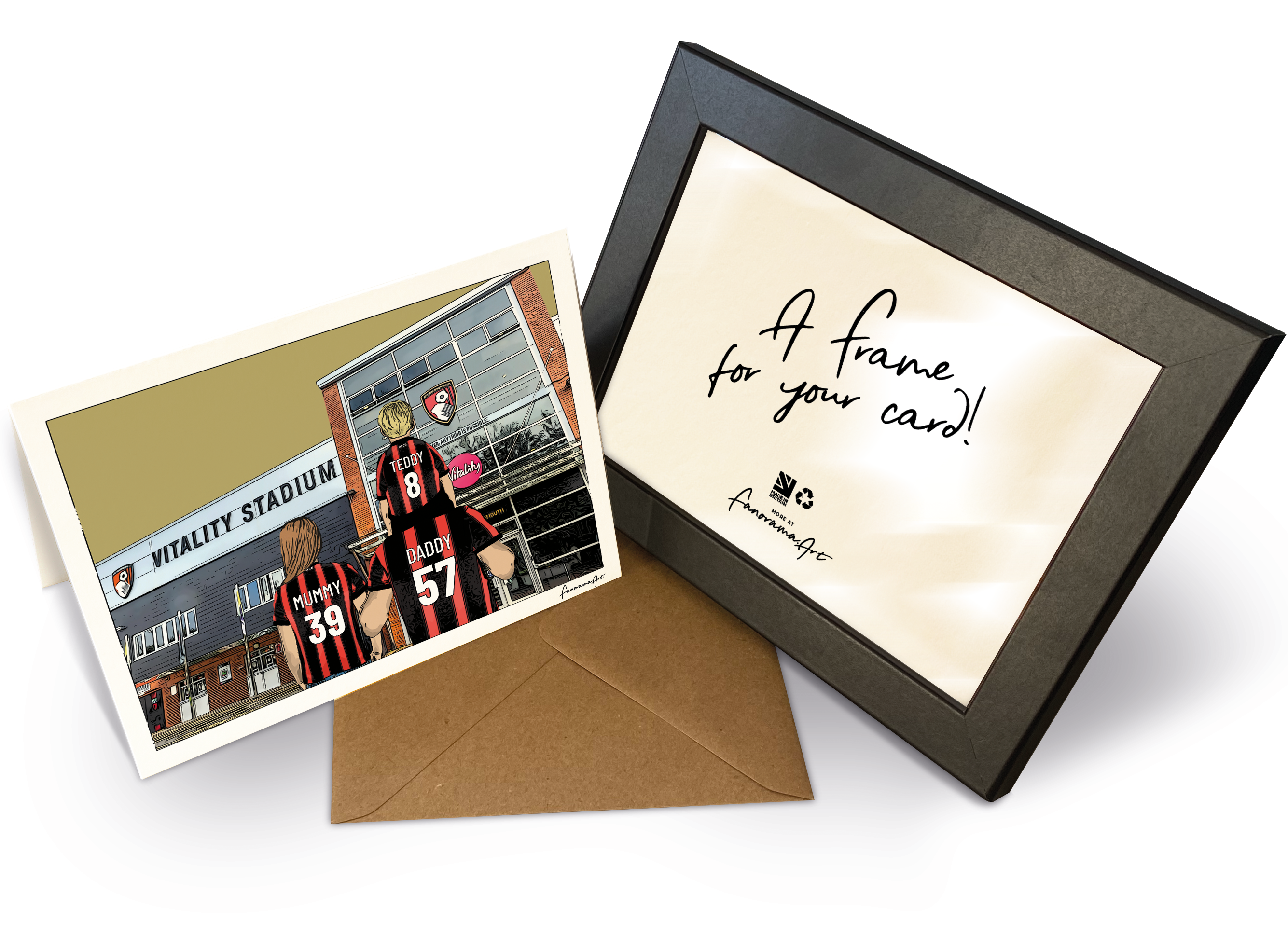 A4 Landscape framed print can completed with a quality black wood frame (frame size 330 x 240mm) the perfect gift for any fan! We also offer a small frame with our 7 x 5" card.
