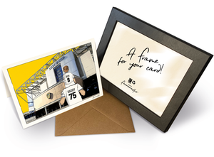 A4 Landscape framed print can completed with a quality black wood frame (frame size 330 x 240mm) the perfect gift for any fan! We also offer a small frame with our 7 x 5" card.