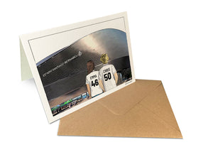 A4 Landscape framed print can completed with a quality black wood frame (frame size 330 x 240mm) the perfect gift for any fan! We also offer a small frame with our 7 x 5" card.