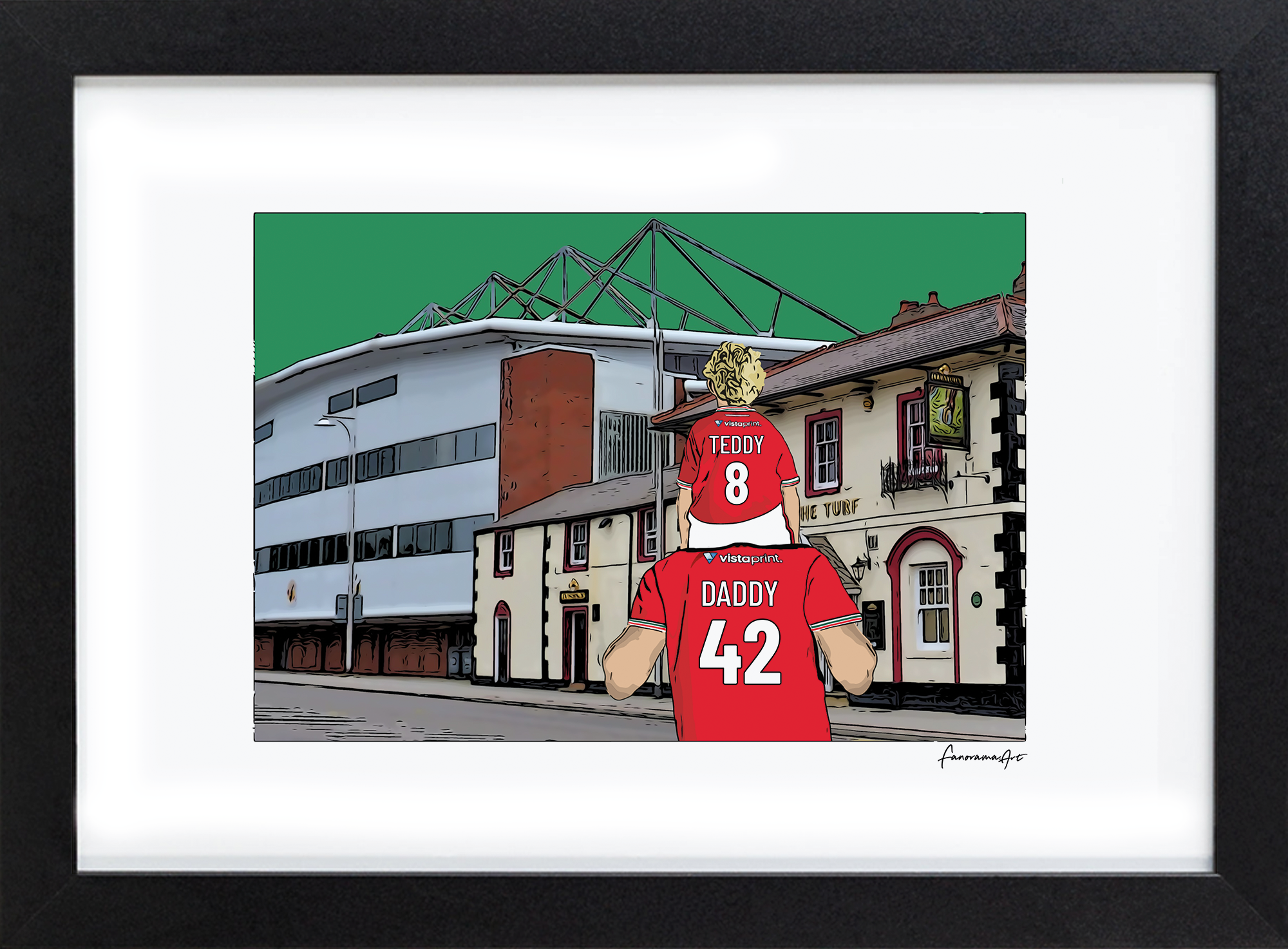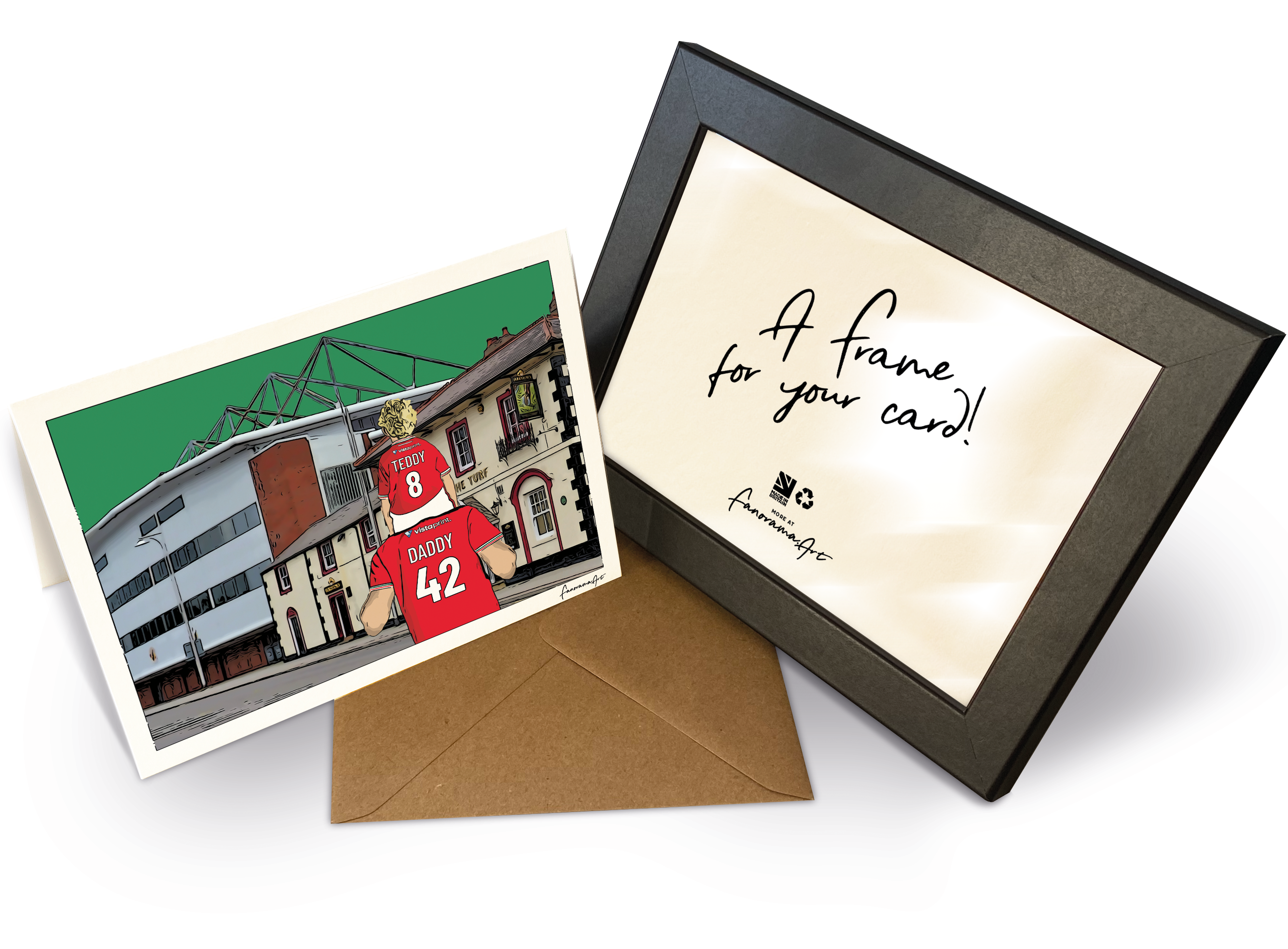 A4 Landscape framed print can completed with a quality black wood frame (frame size 330 x 240mm) the perfect gift for any fan! We also offer a small frame with our 7 x 5" card.